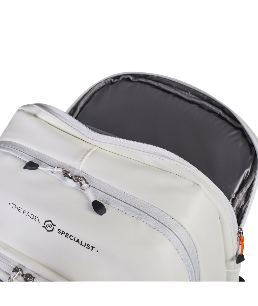 The Bullpadel Vertex W Padel Backpack White is able to carry 1-2 padel rackets and is a durable, comfortable design that complements the Vertex 05 range, in collaboration with Delfi Brea.